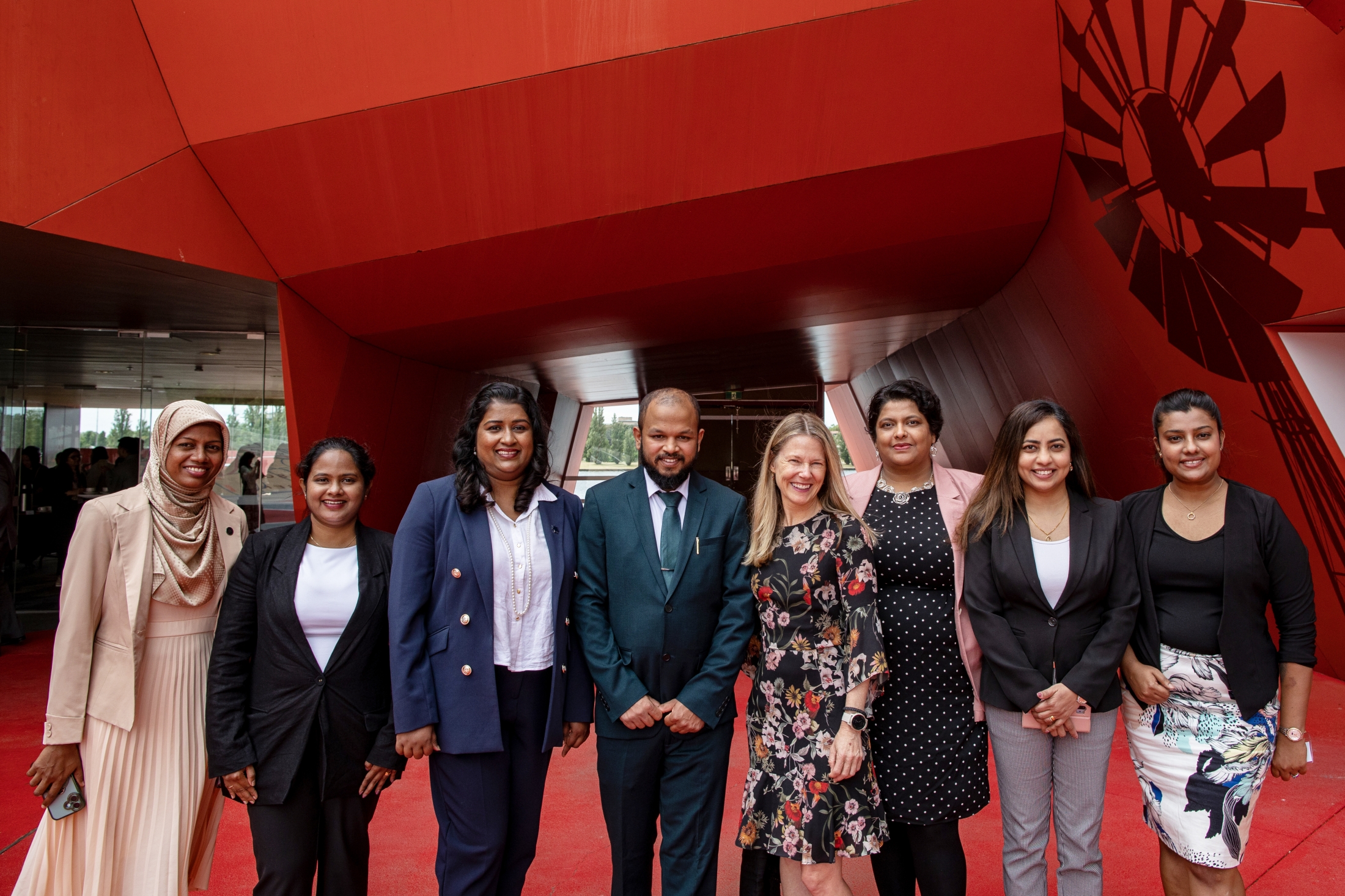 Gayathri (second from left) pictured with Sarah Storey, First Assistant Secretary of the South and Central Asia Division, Department of Foreign Affairs and Trade (fourth from right) and other Sri Lankan scholars at the 2024 Scholars Forum in Canberra.