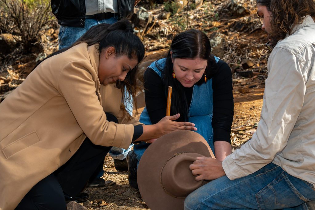 Jeevani (left) building a fire with Alice Tamang (middle), Indigenous Engagement Advisor for Australia Awards – South Asia & Mongolia, and Adnyamathanha guide Izzy during the study tour in the Ikara-Flinders Ranges National Park.